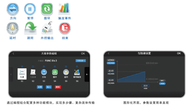 · 通過編程模式來(lái)定義泵的工作過程及參數(shù)