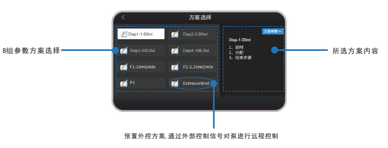 · 預(yù)置外控方案,用于通過外部信號(hào)對(duì)泵進(jìn)行操作和控制