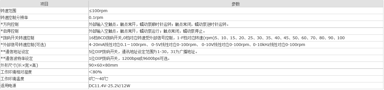 說明:*項(xiàng)目為撥碼開關(guān)結(jié)合外部信號控制方式所特有