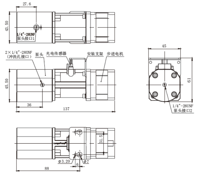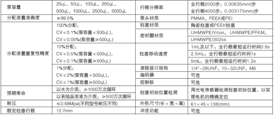 可選沖洗功能,以實現(xiàn)易結(jié)晶溶液的長壽命傳輸??膳渲秒姍C編碼器,以實現(xiàn)電機位置的實時監(jiān)控??膳渲弥每刂破?,以縮短集成系統(tǒng)開發(fā)周期。