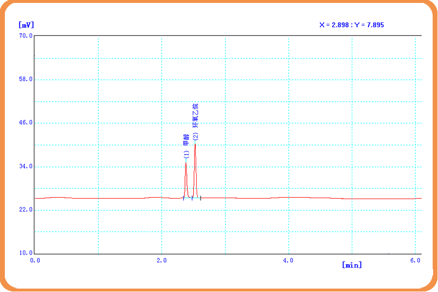 環(huán)氧乙烷工作曲線為:y=489.986+3889*x 相關(guān)系數(shù):0.9997
