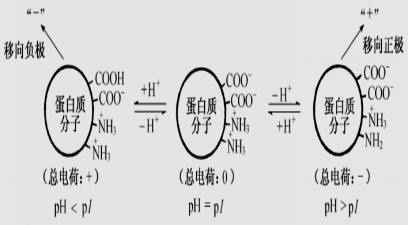 溶液的PH決定帶電顆粒的解離程度,也即決定其帶靜電荷的量。對(duì)蛋白質(zhì)而言,溶液pH值離等電點(diǎn)越遠(yuǎn),則顆粒所帶的凈電荷越多,泳動(dòng)速度也越快;反之,則越慢。因此分離某種蛋白質(zhì)混合液時(shí),應(yīng)選擇合適的pH,使欲分離的各種蛋白質(zhì)所帶的電荷數(shù)量有較大的差異
